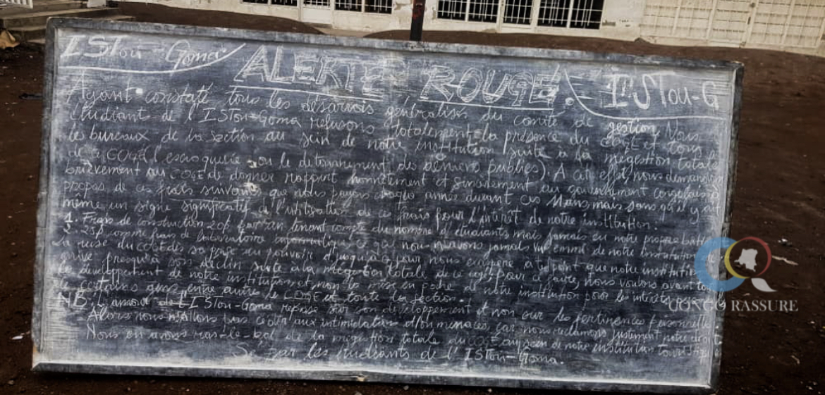 Goma : En grève depuis deux jours, les étudiants de l’Institut supérieur du tourisme demandent au Ministre Nzangi d’enquêter sur la mauvaise gestion des dirigeants de leur institution
