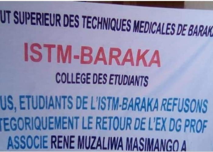 Ceci fait suite à une manifestation des étudiants de cette institution étatique qui ont barricadé la route nationale numéro 5 qui mène à Bukavu et Misisi pour exiger la non prise du pouvoir par le professeur René Muzaliwa ancien directeur général de l’Institut Supérieur des Techniques Médicales de Baraka qui a été suspendu il y a deux ans et qui vient d’être réhabilité dans ces fonctions. La situation est redevenue calme à 11 heures après une intervention de la police.