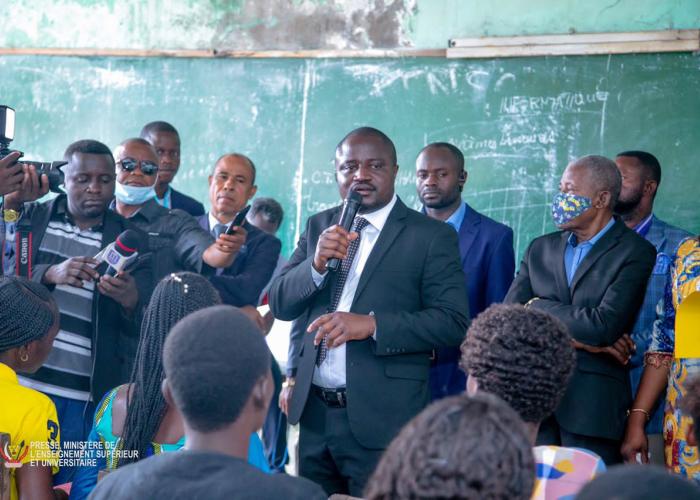 Il importe de signifier qu’avant de procéder au lancement de la partie formation animée par les experts dont le professeur Kabule, le Dr Martin Nsaka et le conseiller scientifique du ministre de l’ESU, Beke Lofembe, Muhindo Nzangi a procédé tôt le matin une série des descentes dans les établissements de l’ESU pour faire un état des lieux des établissements de l’ESU dans la province du Kwilu. À cet effet, tenez que le Ministre a débuté ses visites par l’ISP-Kikwit où il a eu des échanges avec les étudiants trouvés en plein cours, qui d’ailleurs ont rassuré au patron del’ESU de l’application stricte de la mesure interdisant la vente des syllabus.