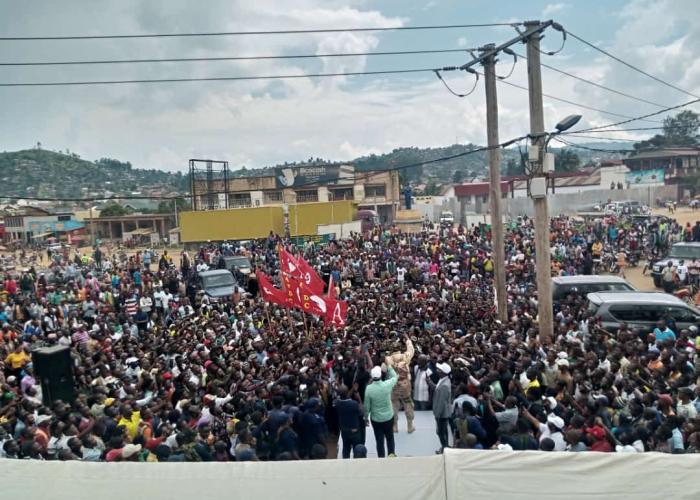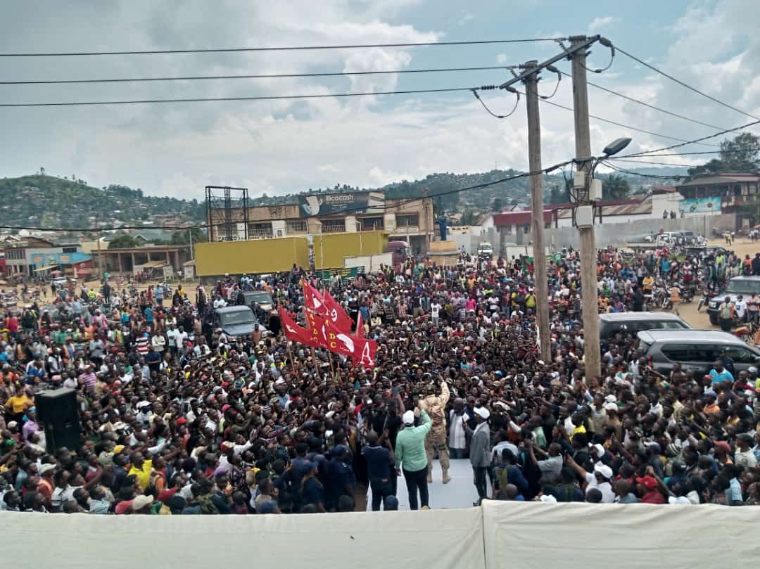 Tout en continuant à explorer la ville, Koffi Olomide a tenu un meeting au rond-point Nyamwissi devant une foule immense venue à sa rencontre. « Je suis venu compatir avec vous et vous témoigner ma solidarité », a-t-il déclaré. « Je salue la sage décision prise par le chef de l’État, celle d’instaurer l’état de siège dans cette zone afin de rétablir la paix », a poursuivi Koffi, tout en rassurant la population que la sécurité reviendra bel et bien dans la région.