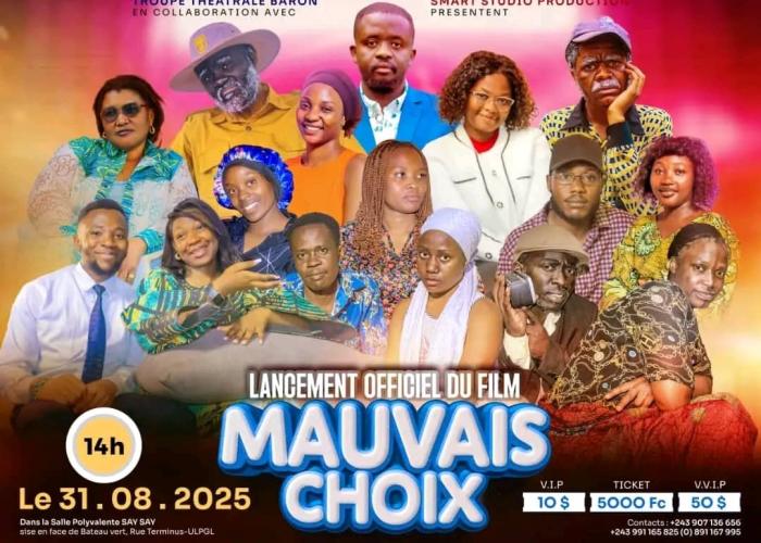 La ville touristique de Goma s’apprête à vibrer au rythme du septième art. En dépit d’un contexte sécuritaire toujours préoccupant dans l’Est de la République Démocratique du Congo, la culture ne cesse de résister. Après trois années de silence, la troupe théâtrale Baron signe son grand retour avec la sortie officielle de son nouveau film « Mauvais Choix », prévue pour le dimanche 31 août 2025.