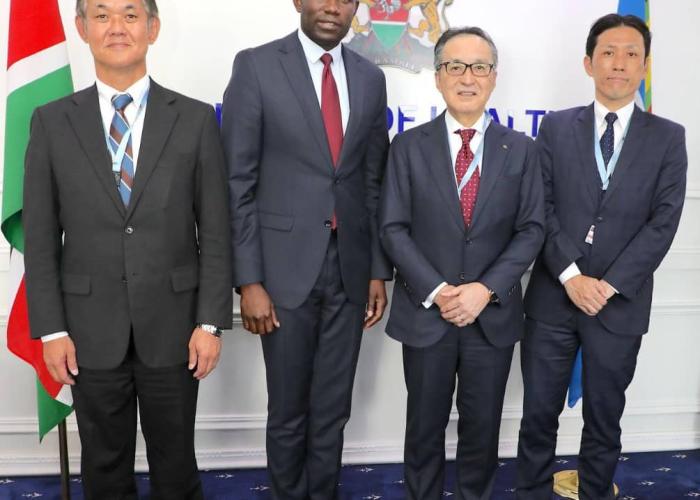 Le secrétaire principal aux services médicaux, le Dr Ouma Oluga, a rencontré mardi 18 novembre une délégation du groupe japonais Marubeni Corporation à Afya House pour discuter d'une éventuelle collaboration visant à développer la fabrication locale d'équipements médicaux et de produits pharmaceutiques au Kenya. La délégation était conduite par le président du conseil d'administration, M. Masumi Kakinoki.