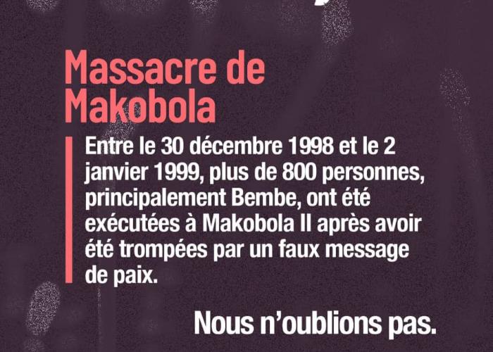 Pour rappel, entre le 30 décembre 1998 et le 02 janvier 1999, plus de 800 personnes principalement Babembe avaient été exécutées à Makobola, en territoire de Fizi, au Sud-Kivu après avoir été trompées par un faux message de paix.