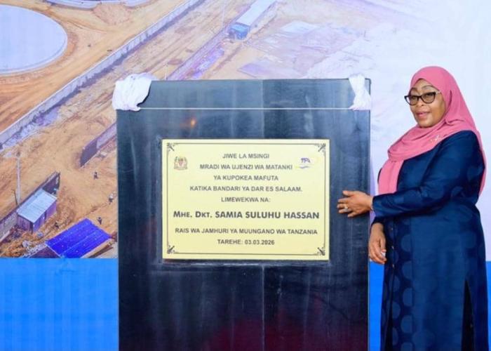 La présidente de la Tanzanie, Samia Suluhu Hassan, a procédé à la pose de la première pierre pour la construction de 15 réservoirs de stockage de carburant à Kigamboni, dans la région de Dar es Salaam.