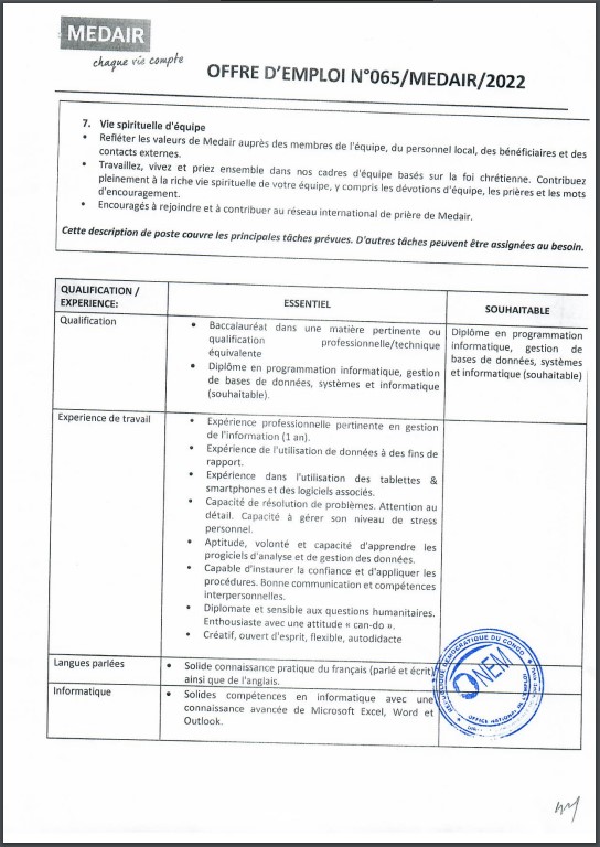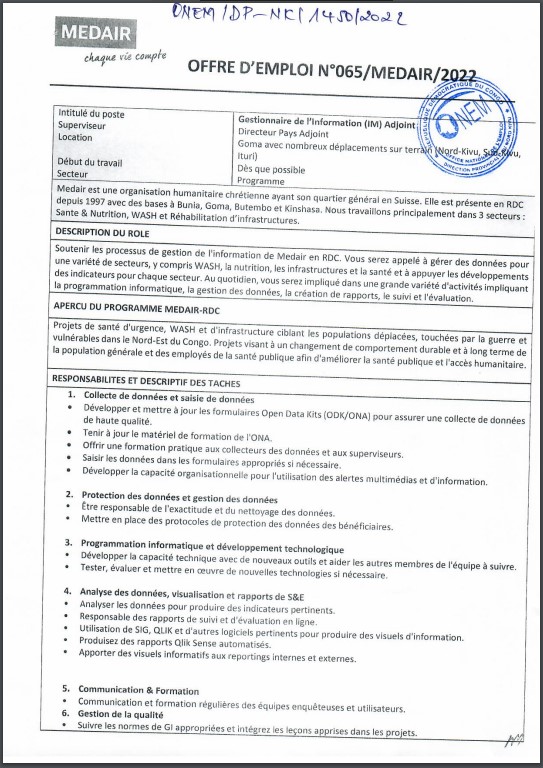 OFFRE D’EMPLOI : MEDAIR recrute un Gestionnaire de l’information (IM) Adjoint