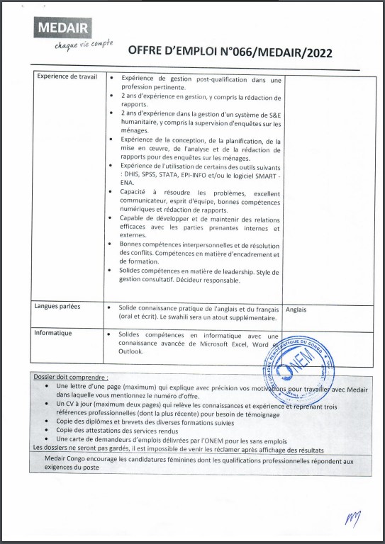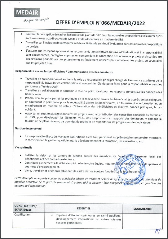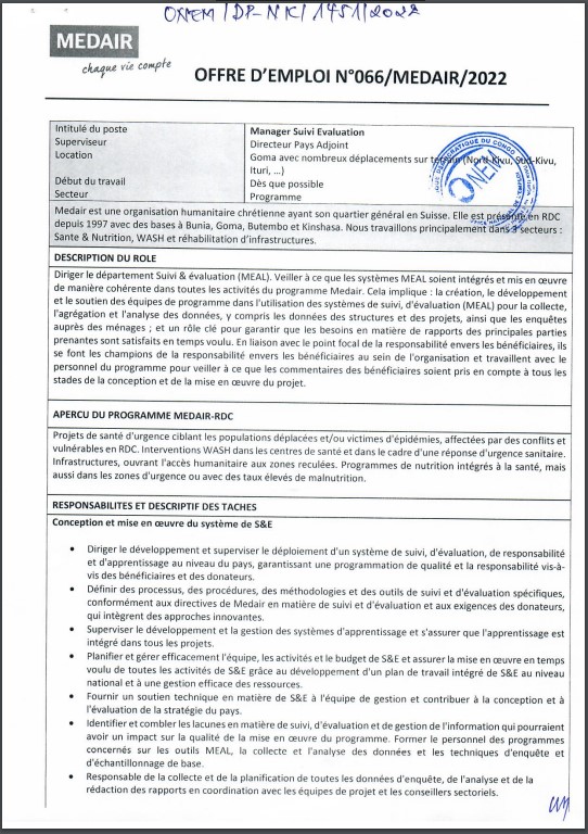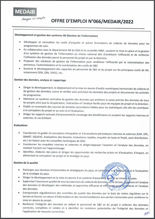 OFFRE D’EMPLOI : MEDAIR recrute un Manageur Suivi Evaluation