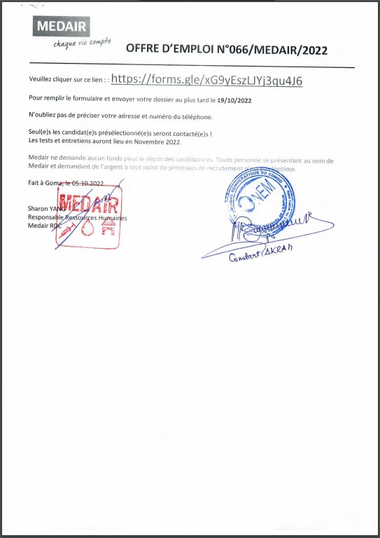 MEDAIR est une organisation humanitaire chrétienne ayant son quartier général en Suisse. Elle est présent en RDC depuis 1997 avec des bases à Bunia, Goma, Butembo et Kinshasa. Nous travaillons principalement dans 3 secteurs : Santé, Nutrition, Wash et réhabilitation d’infrastructures.