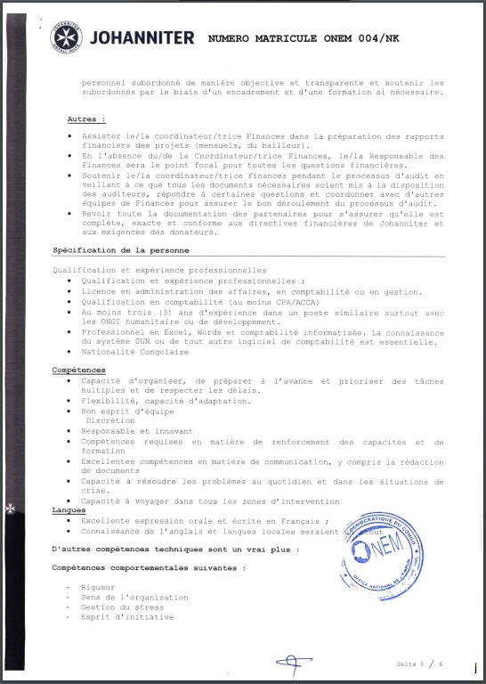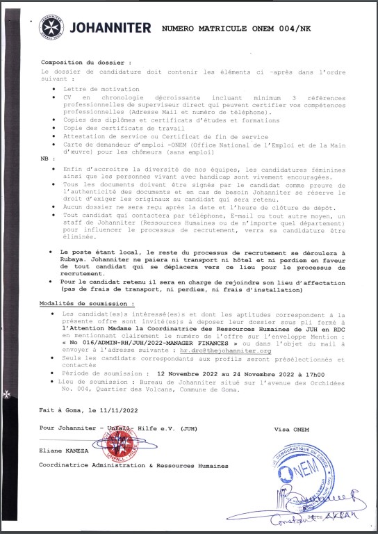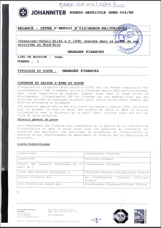 OFFRE D’EMPLOI : JOHANNITER recrute un Manageur Finance