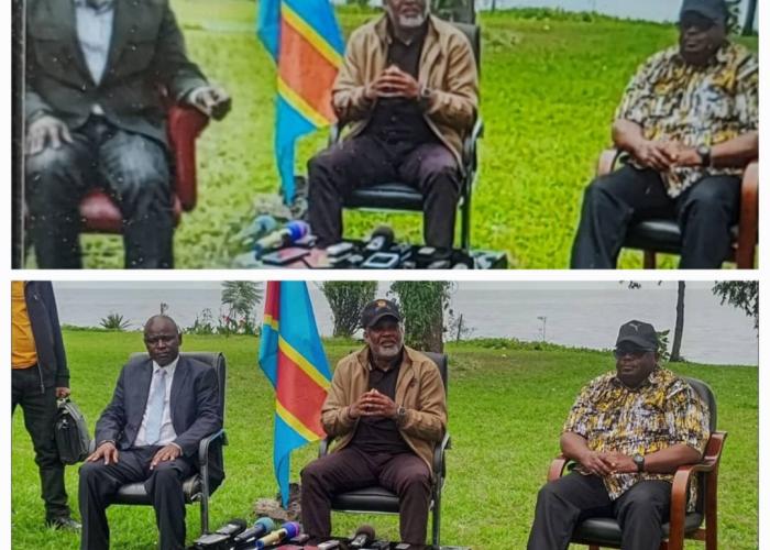 La photo en question a effectivement été prise lors d’un point de presse organisé le 07 février 2025 au gouvernorat du Nord-Kivu, auquel avaient participé Corneille Nangaa et Bertrand Bisimwa. Cette conférence avait été convoquée pour répondre au bilan des morts publié par le gouvernement Congolais dans le cadre des opérations militaires en cours dans l’Est du pays.