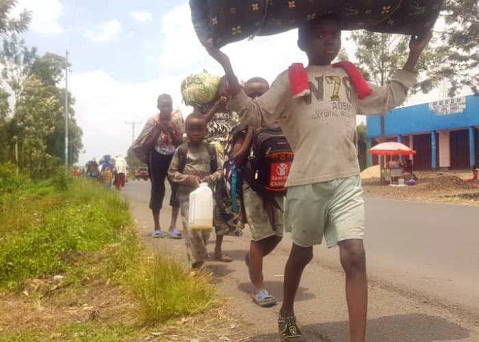 Plusieurs enfants marchant seuls et sans accompagnement ont marché de Sake à Goma, un trajet de plus d'une vingtaine de kilomètres en ayant les esprits tournés vers Sake pour retrouver leurs parents.